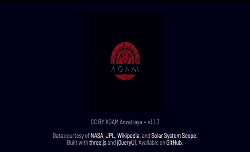 Agam is an interactive orrery web app designed to visualize near-Earth objects using live astronomical data. The project brings the cosmos to life by showcasing detailed, real-time information about celestial bodies. Built using cutting-edge technologies like Three.js and jQuery, Agam pushes the boundaries of web development, offering users an engaging, data-driven exploration of our solar system.